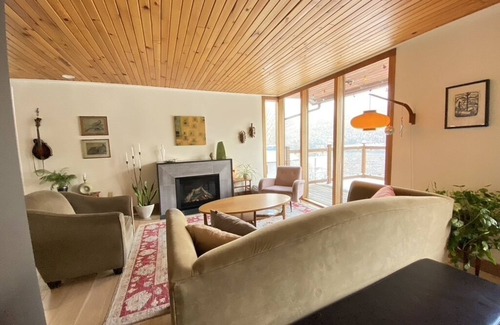Two blocks from downtown Nelson a beautiful 3 bedroom house with lake and mountain views. Quiet, comfortable luxurious getaway with large lake facing porch, comfy front porch and dining area. Private entrance and off-street parking. A three minute walk downtown to the many restaurants, shops, pubs, craft breweries and art galleries. Minutes away from great hikes and world class mountain bike trails. Tazzy our friendly indoor/outdoor cat comes with the house.