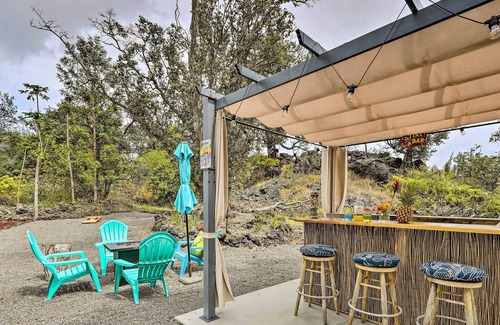 Experience the 'Aloha Spirit' at this 2-bedroom, 1-bathroom vacation rental in the Captain Cook/Naalehu area. The 2-bedroom, 1-bathroom apartment is surrounded by 3 enchanting acres of rare native and rare flowers and plants. You can sit at the tiki bar while you watch for colorful geckos and Hawaiian birds. Or, step inside to appreciate the colorful and well-stocked interior. Venture out to Punalu'u beach, also known as Black Sand Beach, to see the turtles or visit Kula Kai Caverns!