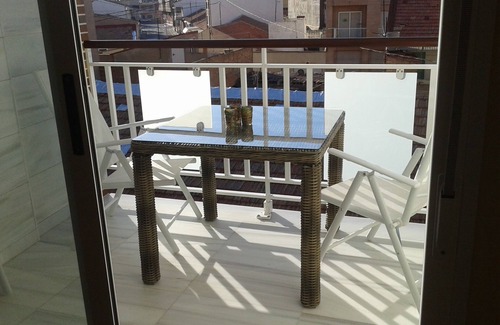This is a new high quality second floor apartment(top floor)65M2 ,right on the beaches of Los Alcazares ,with a shared sunroof(sunbeds supplied) . The sunroof gives you a private place to sunbathe away from the hustle and bustle of the beach, but if you pop down the stairs you are only seconds away from the soothing waters of of the bay.