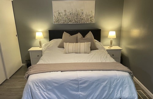 Newly remodeled home, spacious deck w/ string lights, & large yard with firepit on a quiet safe road. 2 car garage! Baby gate on stairs