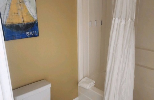Full size kitchen, dining area, full size pull out in living area. TV in every room, quiet area on the harbor. Sitting on the balcony. Feed the ducks. Driving distant to the beach. 5 min to Tangler Outlet stores, malls, eateries nearby.