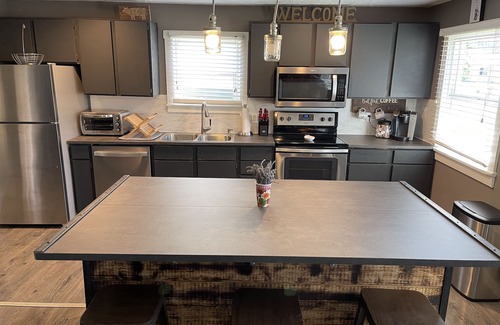 Our house was built in the 50's and completely remodeled with all new beds/kitchen/bathroom/flooring/laundry room in 2018. We wanted a place in Oakridge we could stay in to visit and we are not there that much. 1 king 1 Queen and 2 twins and a large lot give you plenty of room with a great new stainless kitchen. We have Bike storage in the back and are fencing the entire property so the dogs can run!