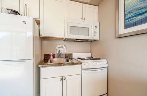 Come to the beach and enjoy this beautifully decorated unit with ocean views that will take your breath away! Wake up and drink your morning coffee (Has a keurig coffee maker, pods not provided) on your private balcony while enjoying the ocean breeze. The unit also has a Murphy bed that pulls down from the wall to fit more friends/family for your vacation if you choose. Please note, this unit does have a camera on the balcony for safety and to guarantee that guests do not smoke anything on the balcony.