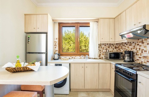Each studio is fully-furnished with all the living amenities a family may need including a family size washing machine and full sized kitchen stove and micro-wave oven. Olive Studios is surrouned by olive trees, rolling hills, and mother nature at your window and doorstep. The estate is a ten minute walk from the longest and quietest beach on Karpathos Island. We are also a ten minute walk from some of the best hiking trails to mountain terrain on the island. Supermarkets, convenient stores and restaurants are a 10-20 minute walking distance away. Driving to beach is in less than 4 minutes.