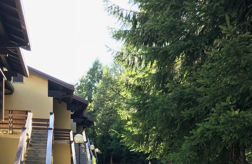 The apartment is a welcoming property on the ground floor with a garden with a breathtaking view of the Adamello chain and Monte Palabione, right on the edge of the forest, just 1.5 km from the town of Aprica (Sondrio) and the Baradello ski area / Palabione / Magnolta.