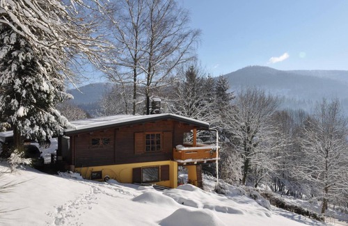 Paradis is an all-wooden chalet set in the middle of a vast wooded property with 3 shallow ponds (70 cm) and large grassy areas where children can frolic or toboggan (toboggans available on site). Superb panoramic views. Absolute peace and quiet, with all shops and facilities just 5 km away in the village of Vagney.