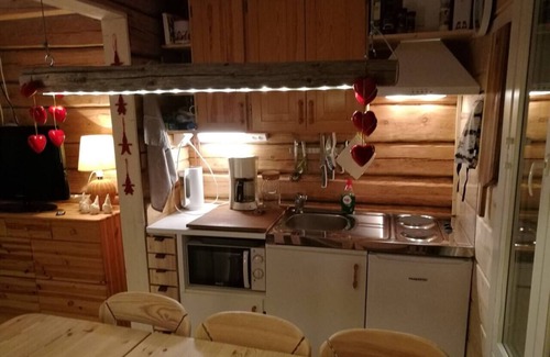 Unique wooden cabin with an authentic Lappish atmosphere. It has 2 bedrooms, a living room, a private kitchen, and a bathroom with a toilet and shower. The Aurora cabin is perfect for families and small groups of up to 6 persons.