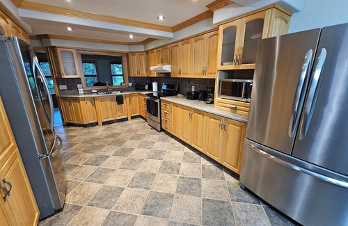 8 bedroom 3 bathroom house surrounded by farm land, full kitchen with 2 fridges and 2 BBQ's one is propane and the other is charcoal.