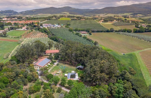 It is located near the medieval village of Bibbona, in the centre of the Etruscan Coast, 500 metres from the "Bolgherese", the famous Wine Road that leads to Bolgheri (Sassicaia), only 5 km from the sea (Marina di Bibbona). A strategic position only 5 minutes from the sea, ideal for excursions to cities of art (Florence, Siena, Pisa, Lucca), medieval villages (San Gimignano, Volterra, Casale Marittimo, Castegnato Carducci, Bolgheri, Suvereto), parks (nature, amusement, archaeological, mining), islands (Elba, Capraia, Gorgona), spas (Calidario), all residing in a green oasis of peace and well-being. It is surrounded by 10 hectares of land, an olive grove and a eucalyptus forest.