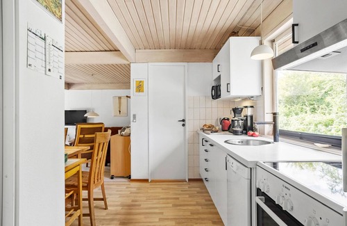 Spend a great time in this holiday home at any time of year. It welcomes you in a holiday home area, from here it is a nice walk to the beach. Use the practical kitchen to prepare your holiday meals together. There is room for socialising with the whole family at the dining table. The cosy living area invites you to play, linger and relax. Take a seat in the sofa area, watch a good film or read a fun book to your children, while a fire in the wood-burning stove creates a cosy atmosphere.
