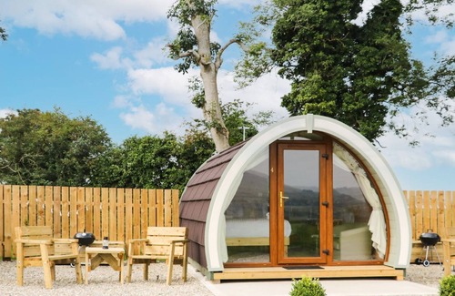 Armoy Pod 4 is a quirky single-storey pod resting in Armoy, County Antrim. Hosting a studio-style layout with a king-size bed, kitchenette and sitting area with en-suite walk-in shower, basin and WC, this property can sleep up to two guests. There is also off-road parking available in a communal car park, a private graveled area with furniture, fire pit and barbeque and a communal lawned area with furniture. For a romantic escape to rural Northern Ireland, choose a stay at Armoy Pod 4.