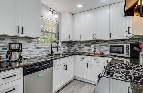 Inside you will find an open floor plan with room for all to enjoy. The living room is set with a plush sofa, there you can unwind and watch your favorite show from the Smart TV. Head to the kitchen for a snack, where you will find granite countertops, and stainless steel appliances. Here you can prepare a gourmet meal for your family or make a refreshing glass of tea. The comforts of home can be found in each bedroom with fresh linens, fluffy pillows, and the master has a TV for late night viewing. The primary bedroom is set with a king bed. The other 3 bedrooms have plush Queen size beds. As an added bonus a washer and dryer can be found in the unit to freshen up any clothes during your vacation.