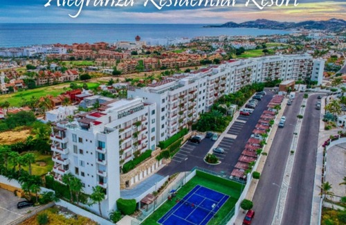 Alegranza is a privately owned gated residential community located in the heart of San Jose del Cabo with 24/7 professional security. Alegranza offers three separate swimming pools and jacuzzi, fitness center with saunas, golf practice area, tennis court, BBQ areas and three restaurants to choose from.The 2200 sq ft unit is a ground floor two bedroom/two full bathroom home with full kitchen, dining, and living room, plus patio. The home includes washer/dryer, complete kitchen including four appliances, WIFI, TV, king size beds, safe, air conditioning, celing fans, and direct patio acess to pools. Sorry no pets.