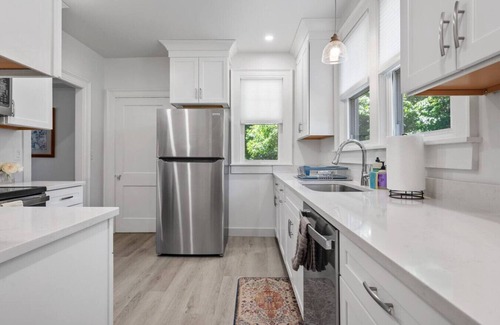 Nestled in the back of a main house away from the street, this 1600 sq foot, newly remodeled house is perfect for individuals or families seeking a central city location with a quiet place to return home.