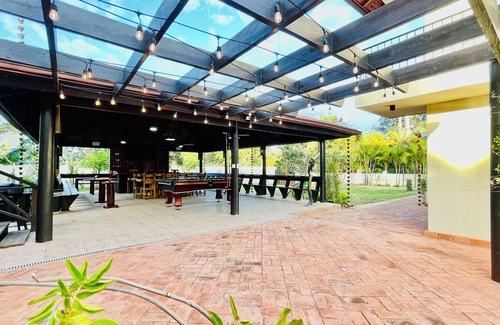 Disfruta de una experiencia con estilo en este alojamiento céntrico. Propiedad de fácil acceso, jacuzzi y piscina climatizada en todo momento, ubicada en una de las zonas mas exclusivas de Jarabacoa, a solo 8 minutos del rio Jimenoa y a solo 5 minutos del Rio La Confluencia.
