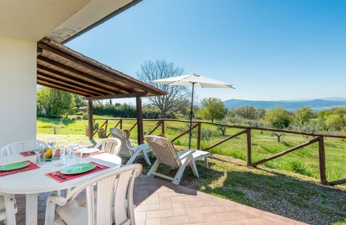 3-room house 60 m2 on 2 levels. Bright, cosy furnishings: 1 double bedroom. Kitchen-/living room (oven, dishwasher, Gas stove, 4 gas rings, freezer, electric coffee machine) with dining table, wood-burning stove. Exit to the terrace. Shower/bidet/WC. Upper floor: 1 room with 1 bed, 1 sofabed and satellite TV. Exit to the balcony. Wood heating. Heating not available in all rooms. Small balcony, terrace partly. Terrace furniture, barbecue, deck chairs. Marvellous panoramic view of the countryside. Facilities: washing machine. Internet (WiFi, free). Please note: non-smokers only. Maximum 2 pets/ dogs allowed. IT053021C2D5ZBLQE6