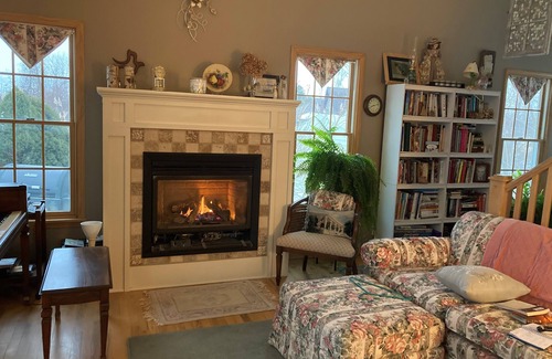 After a day of shopping, sightseeing, and swimming in our quaint little town, come on home and snuggle by the exquisite fireplace with a glass of our local wine, or sit down and play a tune on the fetching piano.