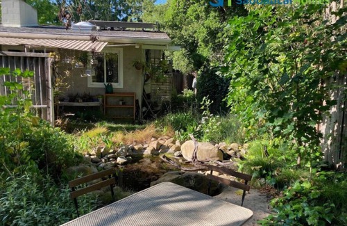 Gentle breezes from the garden waft through the open skylights all summer long with the sound of breaking waves when the surf is up. Two usable bedrooms: main with a queen bed, guest with a foldout high-end double futon. Great room is nice for entertaining. Outdoor dining on back porch or patio.