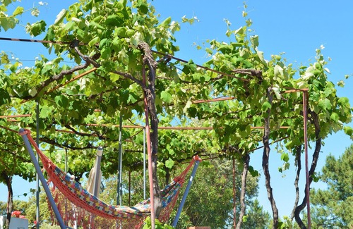 Quinta do Chaparrrinho is a beautiful property located by the Castelo de Bode Reservoir (one hour and a half from Lisbon) with it's own river beach and breathtaking views. We have two cottages for rent, Casa dos Chapéus is a cottage fully independent. It has a bedroom, an extra sofa bed, a fully equipped kitchen and there's optional breakfast. The cottages and surrounding areas are for the exclusive use of guests. Within Quinta do Chaparrinho gardens there are common areas that guests can share, namely beautiful terraces, equipped with hammocks where you can sunbathe and relax. There is a secluded river beach 50 meters from the cottages for the use of guests. Right by this waterfront there is a leisure and meal area available for guest to enjoy. There is also a public river pool beach just 200 meters away from Quinta do Chaparrinho with bar support in the summer. Within Quinta do Chaparrinho you can get beverages such as juices, wine, beer or champagne and assorted snacks. At about a 15 minutes drive there are traditional restaurants. The property has amazing views to the Castelo the Bode Dam and a unique feel of harmony with Nature. The historical villages of Sardoal and Vila Real are at a 20 minute drive from Quinta do Chaparrinho; Tomar, the Portuguese capital city of the Templar Order, with its impressive monuments is also nearby. In Vila de Rei you can visit the geodesic center of Portugal, with breathtaking views. Also nearby there is a marvelous natural river beach called Penedo Furado.