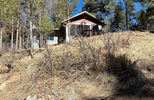 This picturesque cabin is surrounded by tranquil sights. Nestled between the Lincoln National Forest and the Ruidoso River, the property boasts frequent sightings of deer, turkey, elk, and the beloved Ruidoso wild horses. The hot tub, oversized deck, and screened porch are perfect vantage points to observe nature at its best. Access to town with the varied activities Ruidoso has to offer is a short ride or pleasant walk away. The location could not be better.