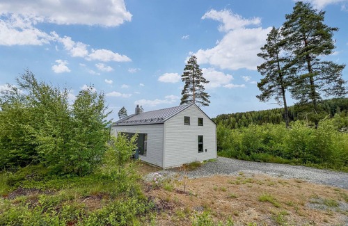 This modern and cosy holiday home in Brøttum offers you a retreat that combines elegance with closeness to nature. The tastefully furnished interiors create a warm and inviting atmosphere, ideal for relaxing days. Large windows provide plenty of light and offer a marvellous view of the surrounding landscape.