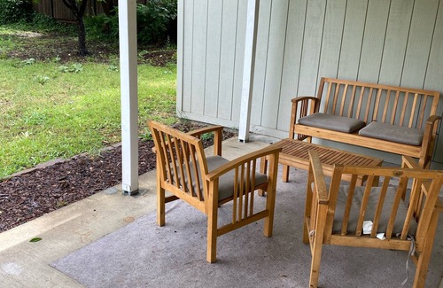Come and enjoy our private and spacious 1200 square foot home and sparkling pool. This quiet and peaceful house has three large bedrooms, fully stocked kitchen, and laundry area. The large mature trees on property provide a lot of shade which is nice to enjoy in Redding's summer heat. The locations is very close to the Sacramento river, river trails for walking and biking, and Orchards grocery store. This property has 2 completely private homes on a huge 1/2 acre lot that share the pool area.