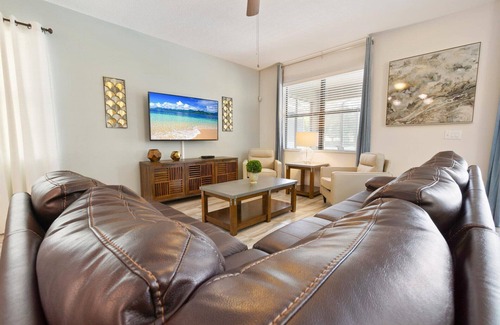ChampionsGate Resort Vacation Pool Home - includes resort clubhouse amenity access Our 9 bedroom 5 bathroom private vacation pool home is a great option for families wanting a home base to enjoy the best of all that Central Florida has to offer ChampionsGate Resort Private Pool Home Sleeps up to 26 9 bedrooms 5 bathrooms Private Pool w Spa - East Facing No Rear Neighbors Fortnight-Themed Game Room including Pool Table Air Hockey Xbox and PS4 Themed Rooms including Harry Potter and Mickey ChampionsGate Resort Gated Community 10 miles to Disney World property Fully equipped Kitchen with seating for 8 at the dining table and 5 spots at the breakfast counter A pack n play is available for use as well BEDROOMS First Floor - Master Suite 1 - One King Bed Attached Bathroom - Bedroom Suite 2 - One King Bed Shared Bathroom BEDROOMS Second Floor - Bedroom 3 - One King Bed Shared Bathroom - Bedroom 4 - Two Double Beds - Bedroom 5 - One King Bed Shared Bathroom- Bedroom 6 - One Twin Bed and One Double Bed Shared Bathroom - Bedroom 7 - Two Twin Beds - Bedroom 8 - One Twin Bed and One Double Bed Shared Bathroom - Bedroom 9 - Three Double Beds Pool Spa Charges and Information There is an additional optional charge of 30 per day plus tax to heat the pool spa The spa will not warm up without the added pool heat Please note that our pools are serviced on a weekly basis BBQ - There is a BBQ at this property for complimentary guest use - While there is a propane tank included with the BBQ we do not provide refills - Guests are welcome to swap the tank at any local store - BBQ must be cleaned upon guest departure or an additional 56 fee will be charged Resort Parking Rules The resort allows a maximum of 5 cars or 3 large passenger vans Do not block the sidewalk or park on the street or the resort will fine you For visitors there is a maximum of 10 cars per property ChampionsGate Resort Amenity Access Included with Rental Huge resort-style pool with pool-side cabanas Exciting water slide Relaxing windy lazy river Interactive children s splash park State-of-the-art fitness center Movie theatre The Grille restaurant full-service restaurant 18-hole challenging golf course Pool-side tiki bar Playground Volleyball courtsDistances from Resort to Shopping Attractions Walt Disney World - 10 miles Universal Studios - 21 miles SeaWorld - 18 miles Orlando Airport - 30 miles Atlantic Coast Beaches - 78 miles Gulf Coast Beaches - 84 miles Publix Supermarket - 2 miles Walmart - 7 miles Dining - 2 milesWhy Choose this Rental Professionally managed to serve all your needs Management company has over 26 years of experience hosting well over 200 000 families Go straight to your rental with online email check-in 24 7 on-call maintenance No Resort Fees Free On-Site Parking Smoke-free and pet-free for your comfort Towels and linens are provided Complimentary WiFi Additional Rental items Available e g 3 4 burner BBQs cribs pack-n-plays strollers high chairs etc Our starter welcome packet supplies 2 rolls toilet paper per bathroom 2 round hotel-size bar soap per bathroom 1 hotel-size shampoo conditioner per full bathroom 1 roll paper towel 1 packet dishwasher detergent 2 trash bags size-13-gallon 1 small box laundry detergent enough for one load Garbage can liners in each bedroom bathroom small garbage cansAny supplies beyond this are up to the guest to replenish we do not restock these items No salt pepper or cleaning supplies are stocked due to safety issues This is an industry-standard practice FOR GUESTS WHO BOOK 30 NIGHTS OR LONGER STAYS this does not apply if you are staying less than 30 nights We will collect a 1 500 deposit Balance is due 60 days prior to arrivalIf canceled 91 days or more prior to arrival - 250 is refundable If canceled 89 - 61 days prior to arrival - the entire 1 500 is non-refundableNo cancellation or modification 60 days or less prior to arrival