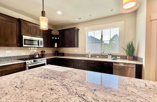 Welcome to the Riverside Retreat, where luxury & lifestyle intertwine. Just steps from the Boise River and Boise's Greenbelt, discover bliss in our modern retreat! Unwind by the pool or walk to Bown Crossing where Boise's best dining & bars are located. Or, stay in & cook in the chef's kitchen. Your pets are welcome with a huge riverside park for them to explore! Garage with parking provided, with extra parking outside. Blackout curtains & foam beds for comfort! Enjoy the gym & games, too!