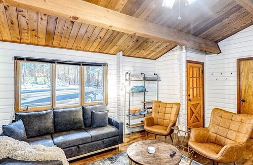Outside, enjoy soaking in hot tub, play cornhole, play disc golf on the 4 hole course, sit around the fire pit or fire up the provided gas grill to host delicious barbecues. Boat parking available