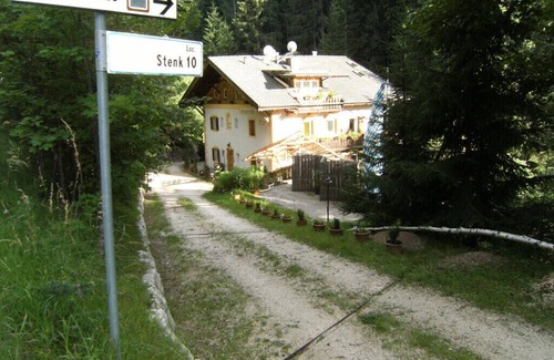 It is located in the Eggental valley below Eggen, surrounded by forest, meadow, water on the rushing mountain stream, only a few minutes by car from the SkiCenter Latemar / Obereggen. All studio rooms with mini kitchen, satellite TV (except room 1 and 3), bathroom, central heating are equipped with French. Double bed, additional bed, table, two chairs, closet and balcony table with two chairs.