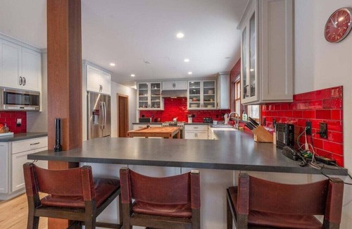 This large remodeled home features four bedrooms and sits in a quiet neighborhood in Homewood. Step into a beautifully appointed living room with large, wood burning fireplace and high vaulted ceilings connected to the open loft. Adjacent is the dining room and updated kitchen with space for families to cook together, walk out to the back deck and find the hot tub below the pines. This main floor includes a queen bedroom, bathroom, and laundry/mud room leading to the garage.