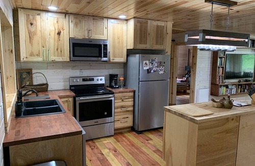 I am creating a homestead based on simple but holistic living. The cabin has been built by myself with the help of family and friends over the course of a year and a half. There are a number of trails to walk on the 35 private acreage of rolling hills. This heavily wooded land hosts much wildlife and beautiful scenery including the flat river which is very close by. There is a sport court which provides opportunities to play basketball, volleyball, pickleball, or badminton. A recreational building is currently being constructed. The Fred Meijer trail provides great biking or hiking opportunities. Lazy float tubing or kayaking down the flat river is very popular and only a short walk away. Horse back riding, golf courses, and an amazing local bakery all within a couple miles. A food forest, natural pool/pond, and other projects are on the horizon. The property offers a chance to reconnect with each other, yourself, or the natural world in a simplistic and harmonious way. (there is no wifi) I hope you come experience it!