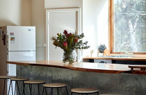 Located on a bush block in Aireys, surround yourself in nature and relax in our rustic home, nestled amongst the trees. The upper living area, with log cabin vibes, feels uniquely like a treehouse! Cosy up to the wood fire and look out for the colourful birds and kangaroo's who come to visit. You will love: the large upper deck, wood pit, and spacious feel of the home (with 2 living areas), this home is ideal for any guest who loves the outdoors, nature and beach walks.