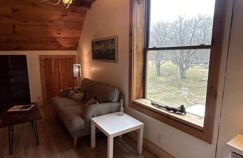 Welcome to our peaceful space tucked away on 60 acres. It’s our newly renovated studio apartment that features a bedroom nook, living room area, island seating area, full kitchen, stove top/oven, full size refrigerator, bathroom with tub/shower, coffee maker, electric kettle, toaster oven, books, games, 40 inch Roku/smart tv, Wi-Fi, washer/dryer and covered/protected outdoor lounge area, as well as window AC unit. Did we mention the huge window that makes you feel like you’re stargazing from your own mini planetarium as you look out on clear nights? Come visit and see for yourself! Nature is just outside your door and local beaches are only 15 minutes away. We’re also 15 minutes from Brunswick and 30 minutes from Portland too, so lots of fun, amazing restaurants and Maine wonders abound! Our apartment is perfect for a quick getaway or a college visit or coming to see a loved one’s game at Bowdoin College or other mid coast Maine Colleges and destinations. Fun times and activities about in all four seasons, ski areas are 30 minutes away and beaches, inlets and water fun are even closer; we have a small stream on our property and it’s a short walk from your doorstep! (All pics are from our simple iPhones no special lenses, just raw beauty!)