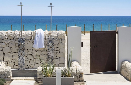 Timo is a beautiful Mediterranean style villa situated in a splendid sea front position in San Lorenzo, a popular seaside resort that boasts one of Sicilyâs most beautiful beaches. Surrounded by a well tended garden and large, panoramic terraces with sea views, this beautiful, cosy house has a small swimming pool and an exclusive Jacuzzi (can be heated on request) on the sun terrace. Recently built, the villa features bright, comfortable rooms furnished with taste and functionality in mind that include a living room-kitchen, three bedrooms and three bathrooms. The villa comes also with air conditioning, internet Wi-Fi, sat-TV, iPod docking station, washing machine, dishwasher, safe and external shower. The property, which is really close to the charming, lively fishing village of Marzamemi, is only a short drive away from the most beautiful towns of south-eastern Sicily, such as Noto, Syracuse and the baroque towns of the Val di Noto, the close Vendicari nature reserve, but also from Taormina and Mount Etna's Park.Interior:Ground Floor: living room-kitchen, 2 double bedrooms with en-suite shower, 1 room with double sofa bed (cm190x140), 1 bathroom with shower.Exterior:Veranda with dining area, terrace, garden, swimming pool, sun terrace. First Floor: sun terrace with Jacuzzi.Check-in: 17:00 - 21:00Early check out: before 08:00 charged Euro 50.Services included: final cleaning, bed linen and towels, water and gas consumptions.Extra services (to pay on the spot): safety deposit euro 500 in cash, air conditioning, heating.