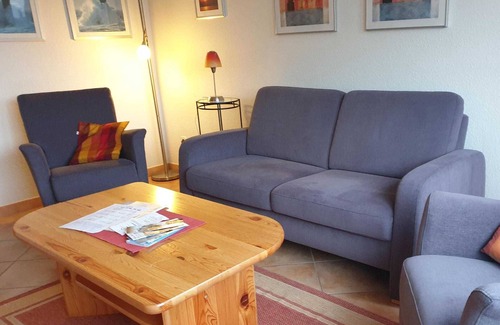 This beautiful bright apartment is located in Goting, the district of Nieblum. The beautiful beach of Goting with a children's playground can be reached in a few minutes on foot, from here everything can be easily reached by bike, Nieblum with cafes, restaurants, the sea 65 sqm, bright and nicely furnished upper floor apartment with south-facing balcony offers peace and relaxation for four persons. The apartment offers a bright living room, a spacious shower room, a kitchen with dishwasher and dining area, and 2 spacious bedrooms (one with a double bed and one with two single beds). The comfort of the apartment includes a large satellite LCD TV, CD / DVD player , Coin operated washing machine - and dryer and a parking space directly at the house. From Easter to the autumn holidays there is a bakery nearby with fresh bread and small items for breakfast daily from 7.30-10. 30 a.m.). The nearest grocery store is in Nieblum, this non-smoking apartment is fully tiled and therefore well suited for allergy sufferers. Pets are not allowed!A really nice vacation home where you will feel comfortable!The property is located on the 1st floor. Room layout: 1 bedroom (1 double bed), 1 bedroom (2 single beds), 1 living room, 1 separate kitchen, 1 bathroom with shower. Features: Award: Allergy-friendly, Pets not allowed, Child-friendly, Non-smokers. Outside: parking space f. Bikes, balcony, balcony furniture, parking. Children: children's swing in the garden. Kitchen / household: oven, ironing board and iron, freezer, dishwasher, microwave. Sanitary: hairdryer, make-up mirror. Service: bed linen / towels (with additional costs) .Entertainment / communication: CD player, DVD player, flat screen TV, radio.