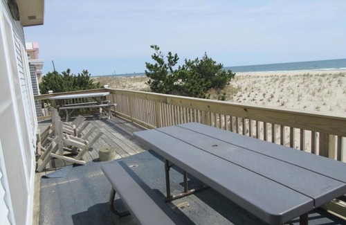 Nice, clean second floor oceanfront triplex with great ocean views. Owner requests tenants to clean up after themselves to maintain the low rates - NO cleaning service is provided. This second floor duplex is ocean front in Ship Bottom on 5th street and close to shops, and the entrance to the Island for quick on and off. Homeowners recently upgraded kitchen and carpeting. Owner provides pillows and blankets/comforters for your use.
