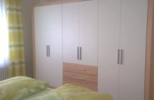 The apartment corresponds to the standard like the other two apartments. Because the apartment is located on the ground floor/high parterre, the windows in the bedroom, living room and in the courtyard (2nd bedroom) each have electrically height -adjustable blinds. The entrance door to the apartment can be darkened with a curtain, so that the staircase light does not seem to the living area. Since December 2017, we have had a new balcony system built on the house on the courtyard side, which is equipped with a nice balcony set, two relaxing chairs and a parasol and invites you to linger. The apartment is bright and friendly. The bathroom is also equipped with a hair dryer. The bathing window was renewed in 2018 and has an automatic window ventilation.