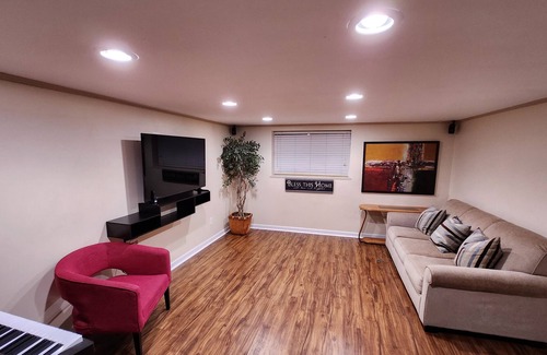 Brought "man's best friend" to this lower unit? Yes!..that'll make this HOME more than anything. =) Private rear entry down a few stairs. Right to the capable & handsome kitchen or left to the living room with a truly comfy queen pull-out couch and large smart tv, ready for your streaming services; just log in.