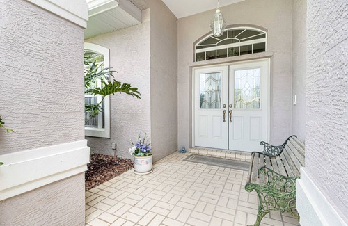 Whole 2800 Sq Ft Home in quiet neighborhood Large Master Suite with King Bed, 42” TV, & Dual Vanity, and Garden Tub. Large Bdrm with King Bed and private bath. Guest Bdrm with Queen bed and private bath. Large Kitchen, Kitchen Dinette, Living Room, Dining Room, 55” TV Room, Lanai with Propane Gas Grille and Patio Table. ADT Security, Whole House Intercom, and Commercial Grade Wifi. Dual HVAC Units. Commercial grade large capacity front washer & dryer
