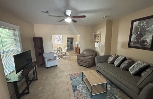 Nestled in the heart of Tucson, this delightful house offers superb accommodations for guests. With 4 bedrooms including 3 queen beds, 1 bunk bed, and 1 twin bed, this peaceful retreat is perfect for families or groups. Enjoy the convenience of amenities like a washing machine, WiFi, AC, and heating and a hot tub.The 2 bathrooms come equipped with a hair dryer and shower. With a large yard fully fenced in , off the street parking.You're sure to make fantastic memories with a stay at our place. No matter what you are visiting for, this home provides easy access anywhere anywhere you wanna go.