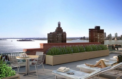 The conveniently located building in the heart of Battery Park City is located one block from the water and Hudson River Park, the building features views of the Hudson River, New York Harbor, the Statue of Liberty, the downtown skyline, and access to Rector Place Park, which is located directly across the street.