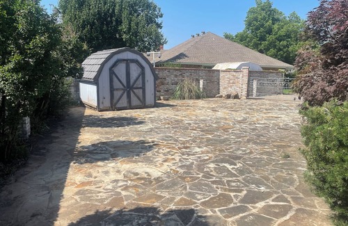 Welcome to your luxurious retreat in Oklahoma City! This expansive home boasts a grand primary bedroom with ensuite, two plug n' play offices, and a beautifully landscaped backyard with a private pool and pool house. Perfect for families, groups, or remote workers, enjoy the serenity of a private oasis while being minutes from the vibrant Paseo Arts District and Bricktown. Feel safe with a whole home security system complete with external security cameras. Experience the ideal blend of comfort, luxury, and convenience.