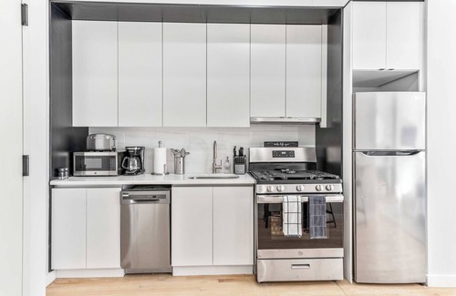 This elegant studio features a modern setting with lots of space, high ceilings and natural sunlight! The home is fully equipped with everything you'll need for a comfortable and supreme stay! From stainless steel appliances, a renovated modern bathroom, comfy bed, and all the essentials to make your stay in New York incredible!