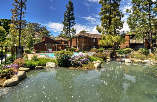 The lush, landscaped grounds include waterfalls and streams running throughout the complex. Walking to the spa, sauna or heated pool you'll enjoy the babbling brook, flowers, butterflies and birdlife.