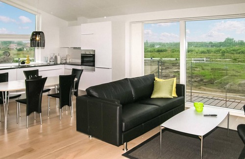 On the northern edge of Frederikshavn lies this beautiful and well-equipped vacation home. It belongs to the Palm City development, which is located near the sandy beach of Rønnerhavn. Look forward to a relaxing vacation with your loved ones in this modern and comfortable vacation home. While you will find the cozy bedrooms on the first floor, the bright and comfortable living room, with kitchen, extends on the 1st floor. The equipment and furnishings are of high quality and provide the right setting for a relaxing vacation. Enjoy yourself here, swing the wooden spoon, play board games or relax on the sofa. In front of the living room there is a sunny balcony with a view and On the first floor there is also a terrace where you can relax. Plan your activities and excursions for the day ahead while having breakfast on the large balcony.