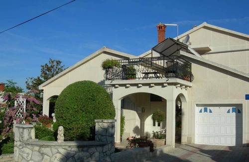 The studio is located in a detached single-family home and is furnished in a modern style. Also due to its quiet and sunny location the domicile is popular. Available for shared use: barbecue facilities and courtyard.LocationVrsi. The studio is located on a garden plot with flowers and shrubs. The landlord lives permanently in the house, but uses a seperate entrance. Access is via a side road (asphalted). Parking is available on the property. Specialair conditioning.Facilities: internet access (WLAN) and washing machine. TV reception takes place via satellite. Dogsallowed, EUR 5.00/pet per day. DistancesShopping 400 m, restaurant 350 m. In summer: Adriaitic sea (beach 280 m in Vrsi). DivisionStudio, 1 floor, 1 room, 30 sqm, in total 3 beds (including 1 additional bed). RoomThe entrance to your studio is located on the 1st floor