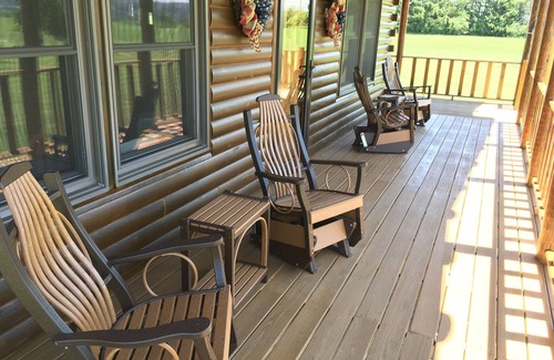 Beautiful Tri level log home situated on several private acres with its own non motorized lake. Well equipped kitchen, cozy living room with electric fireplace, loft area great for kids play, laundry room, 3 bedrooms( King, Queen, 2 twin beds and futon), 2 full baths, Large bar and gathering area with walkout patio, great for grilling. Spacious wrap around porch with plenty of seating. Huge well manicured lawn offers beautiful views of the water and surrounding hills. If you like privacy this is the place for you. Ideal family get away or perfect honeymoon spot. Great place for children, lots of lawn to run around on, many activities provided. There are no pets, parties or smoking allowed. We also have a minimum rental age of 30 for the primary renter. For security reasons there are cameras viewing the entrance doors.