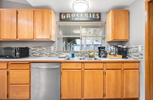 - Kitchen is stocked with kitchen appliances, cookware, silverware, servingware, keurig coffee & tea
