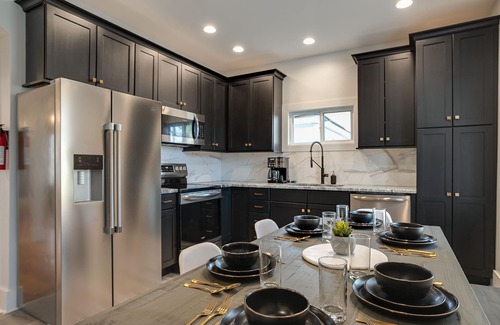 + Three cozy rooms, each with a King-Sized memory foam bed, and a fully stocked kitchen with seating for six, perfect for bigger families or gatherings of friends.